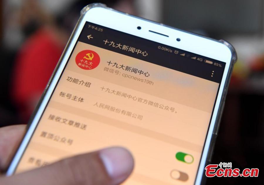 The media center for the upcoming 19th National Congress of the Communist Party of China (CPC) has launched an official website and WeChat account. The site, 19th.cpcnews.cn, and the WeChat account, cpcnews19th, will provide journalists and the public with the congress agenda, latest news, announcements and background information on past national congresses in both Chinese and English. Journalists can also inquire about services provided by the media center via the WeChat account. WeChat is China's top messaging app offered by Tencent. (Photo: China News Service/Zhang Bin)