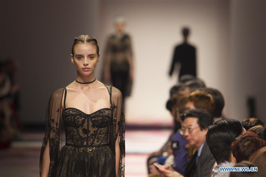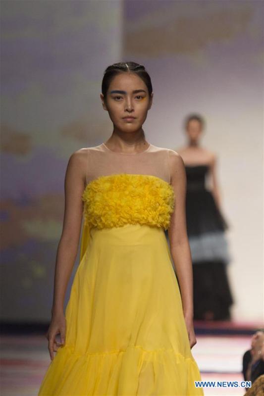 Models present creations during the Shanghai Fashion Week Spring/Summer 2018 in Shanghai, east China, Oct. 11, 2017. Shanghai Fashion Week kicked off here on Wednesday. (Xinhua/Du Xiaoyi)