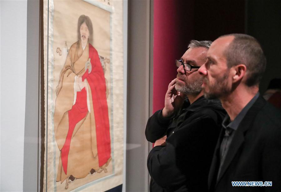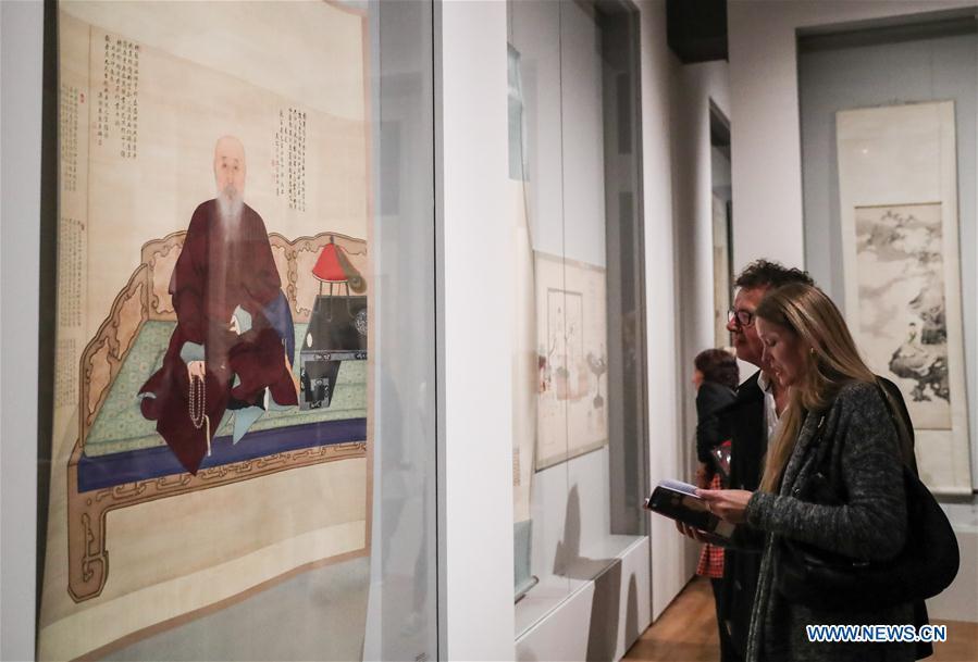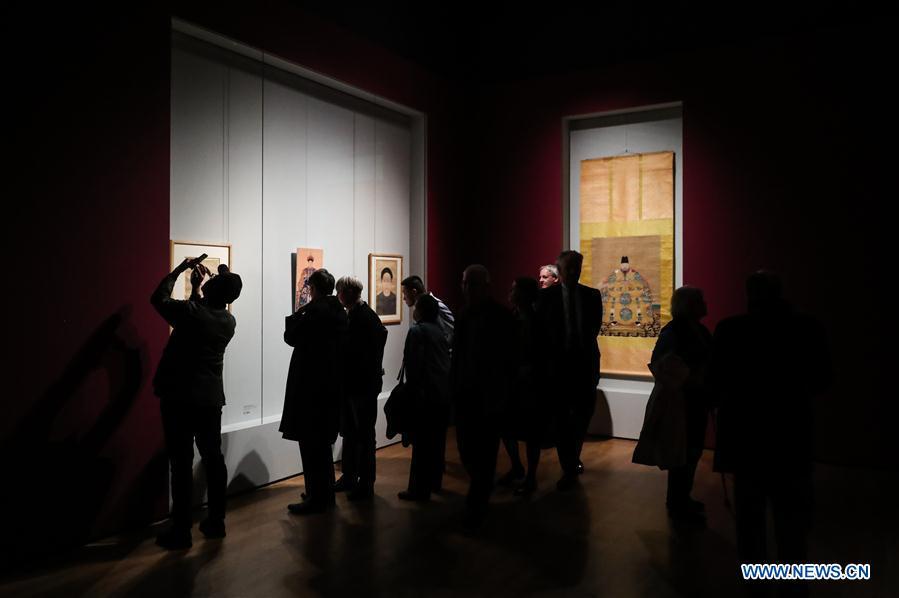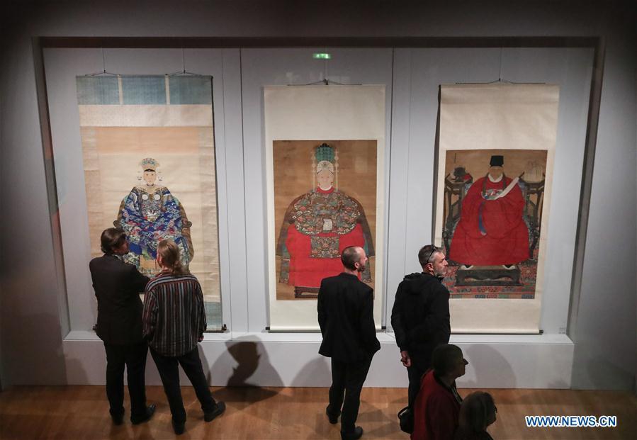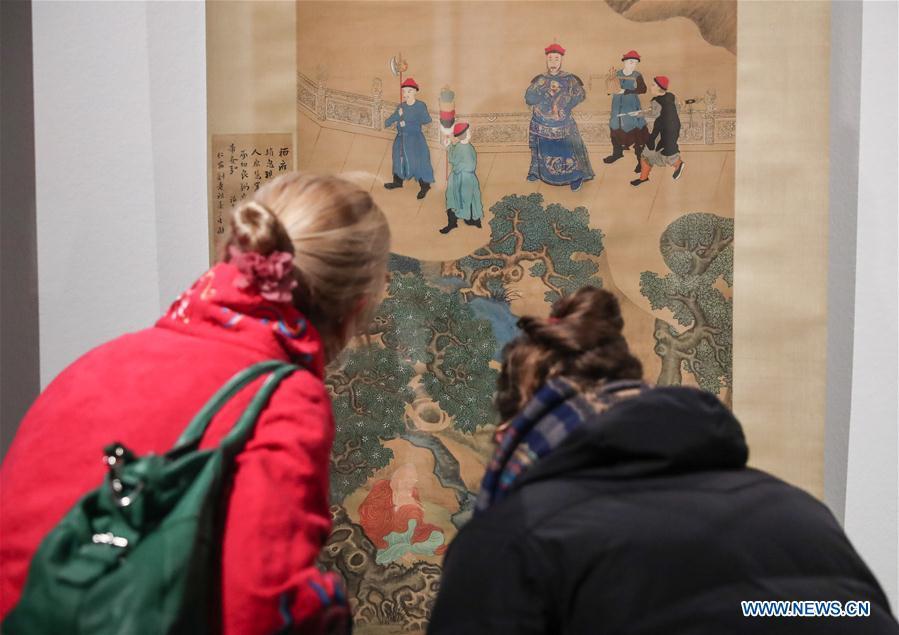 wo visitors look on a painting during the Chinese portrait painting exhibition "Faces of China, Portrait Painting of the Ming and Qing Dynasties (1368-1912)" in Berlin, capital of Germany, on Oct. 11, 2017. Europe's first-ever grand exhibition explicitly dedicated to Chinese portrait paintings was unveiled in Berlin in the evening of Wednesday, the day China and Germany celebrated the 45th anniversary of the establishment of diplomatic ties. (Xinhua/Shan Yuqi)
