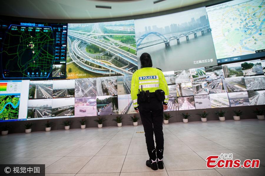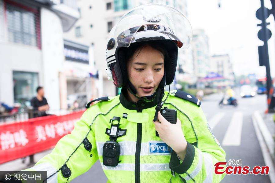 Traffic policewoman Zheng Yijiong, 24, works in Hangzhou City, the capital of East China’s Zhejiang Province. Zheng is the first Chinese police officer to work with the assistance of artificial intelligence in a local police unit called TPTU, which is responsible for rapid responses to road issues. (Photo/VCG)