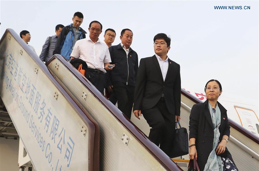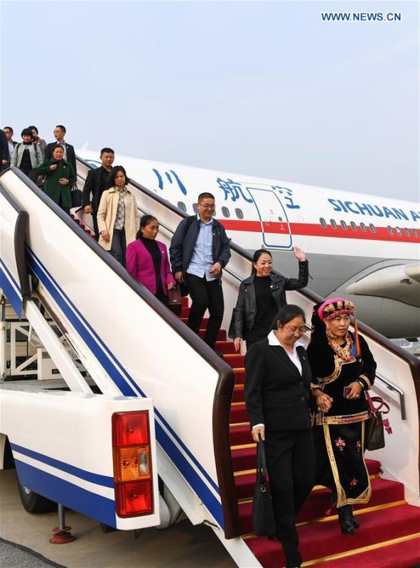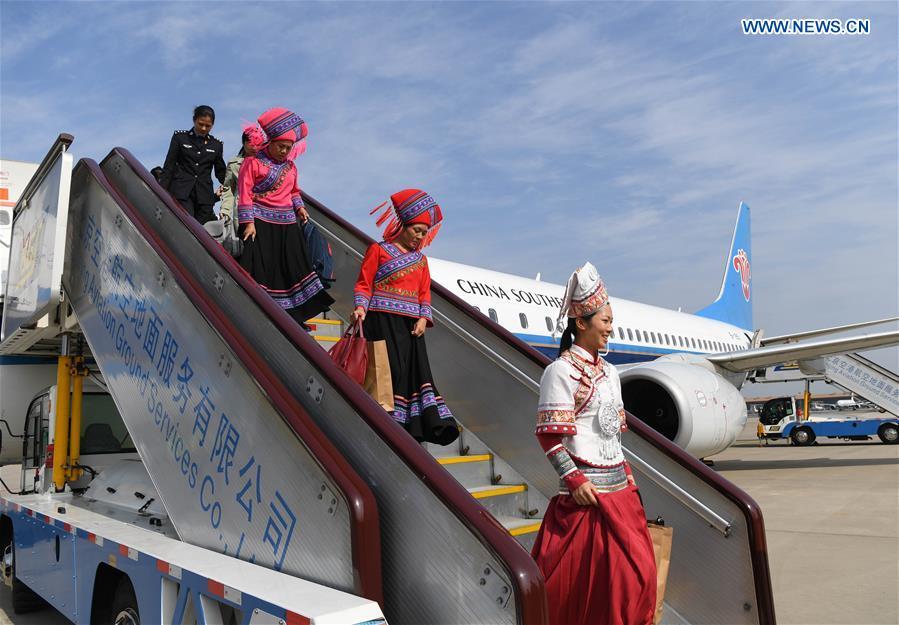 Delegates of Hunan Province to the 19th National Congress of the Communist Party of China (CPC) arrive in Beijing, capital of China, Oct. 16, 2017. The congress will start on Oct. 18 in Beijing. (Xinhua/Ding Haitao)