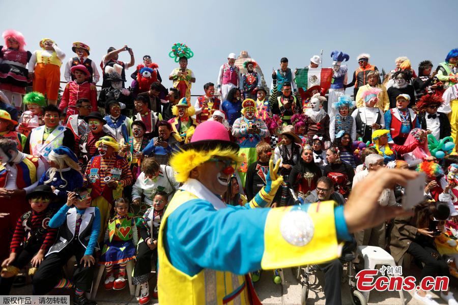 A clown holds a stuffed toy representing Mexican rescue dog Frida during the 22nd Latin American clown convention at Revolucion monument in Mexico City, Mexico, Oct. 18, 2017. (Photo/Agencies)