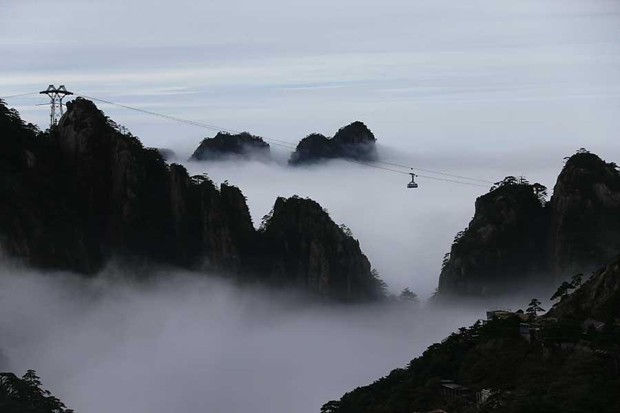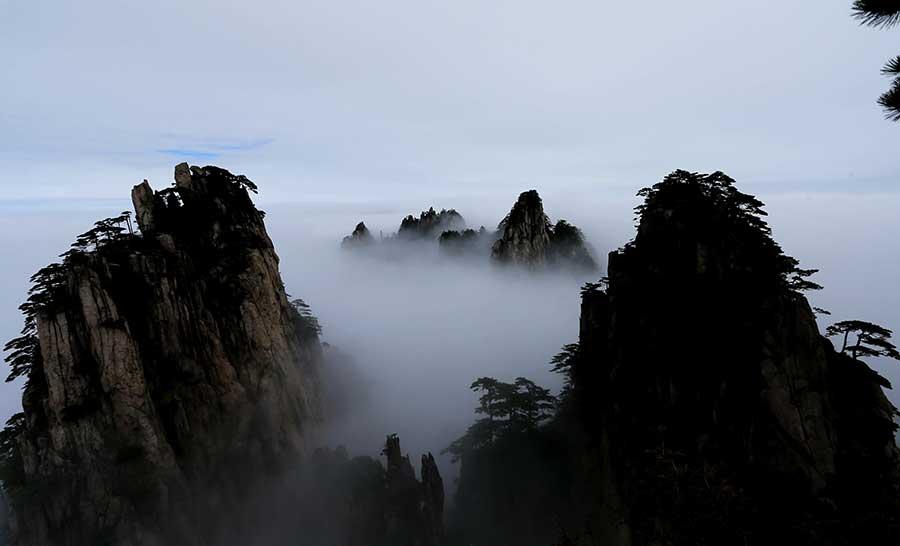 Mist shrouds the Mount Huangshan scenic area in Auhui Province on Oct. 18, 2017. Mountain peaks appear partly hidden after a recent rainfall. (Photo/Asianewsphoto)