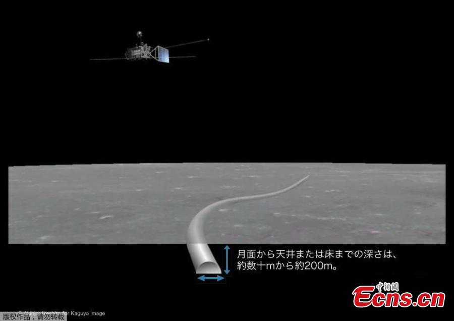 The Japanese space agency JAXA announced on Oct. 18, 2017 that an enormous cavern stretching for about 50 kilometers exists beneath the moon’s surface, offering a possible protected site for future lunar bases. The cavern, found in the Marius Hills area on the near side of the moon, is about 100 meters wide and extends for about 50 km, according to data taken by JAXA’s Selenological and Engineering Explorer (SELENE), also called the Kaguya moon probe. (Photo/Agencies)
