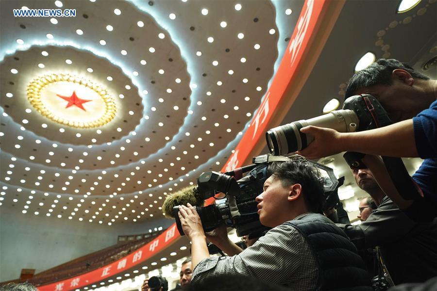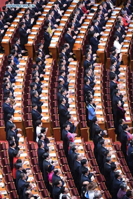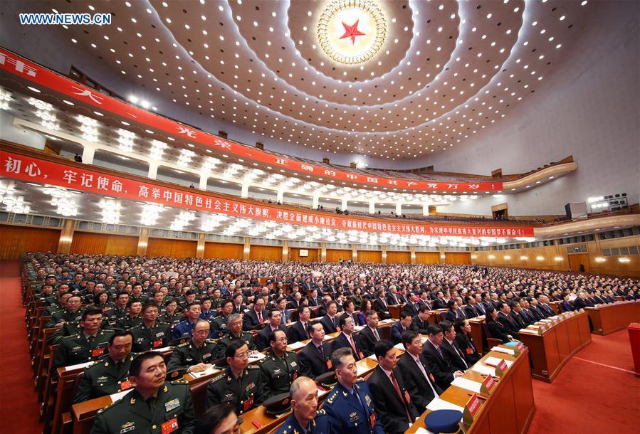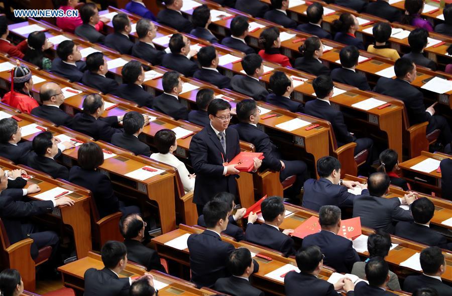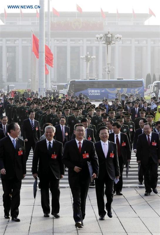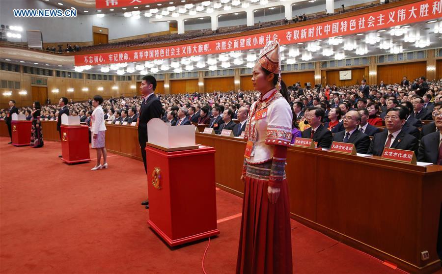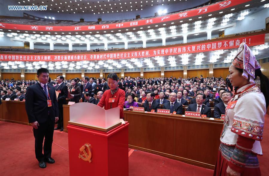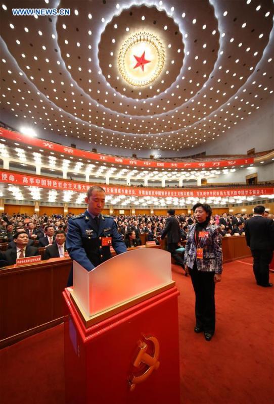 Working staff distribute ballots to the delegates at the closing session of the 19th National Congress of the Communist Party of China (CPC) at the Great Hall of the People in Beijing, capital of China, Oct. 24, 2017. (Xinhua/Wang Ye)