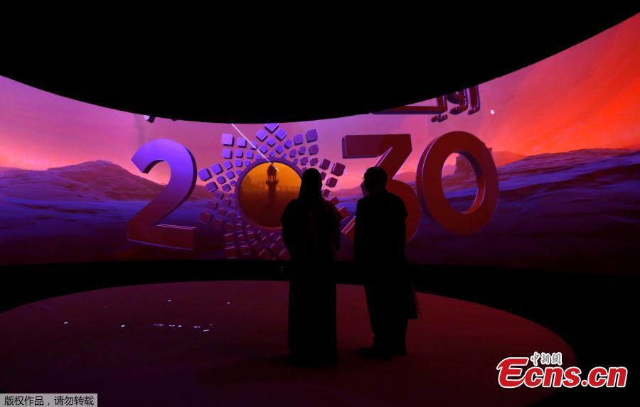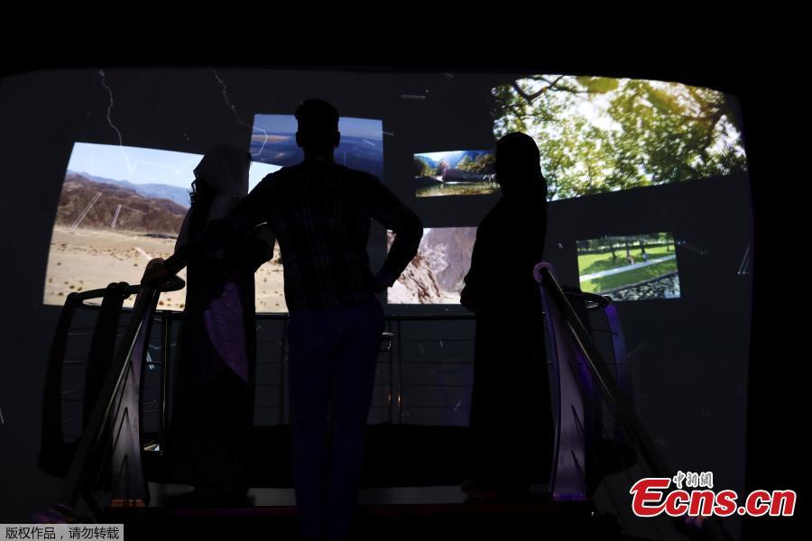 Visitors watch a 3D presentation during an exhibition on 'NEOM', a new business and industrial city, in Riyadh, Saudi Arabia, October 25, 2017. Saudi Arabia announced on Tuesday a $500 billion plan to build a business and industrial zone that links with Jordan and Egypt. The 26,500 square km zone, known as NEOM, will focus on industries including energy and water, biotechnology, food, advanced manufacturing and entertainment, Saudi Crown Prince Mohammed bin Salman said. (Photo/Agencies)
