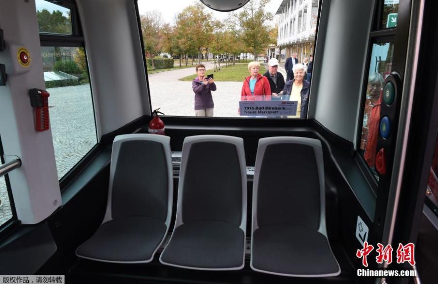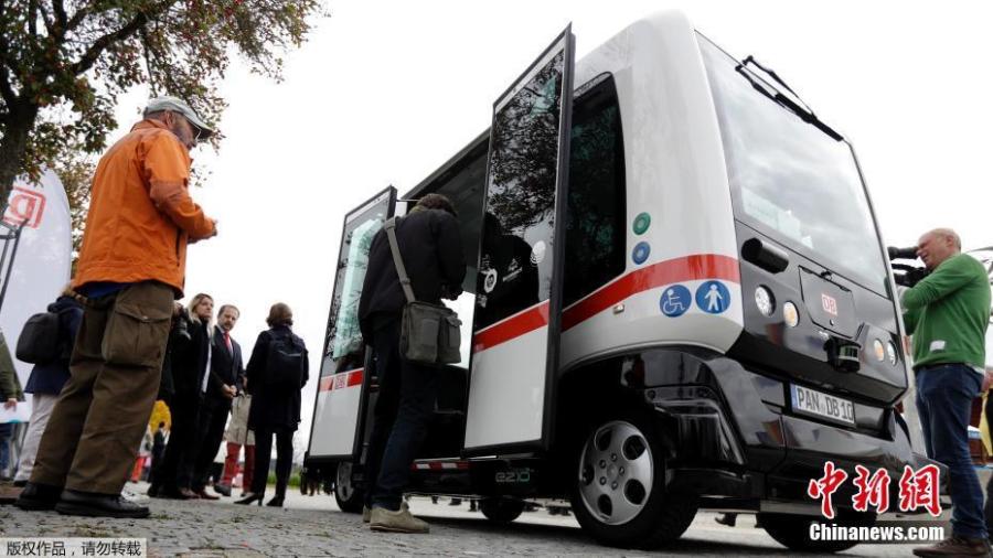 German railway company Deutsche Bahn has introduced an autonomous bus to drive passengers along a pre-programmed route in Bavaria. In case of an emergency, a human driver can take control with a joystick. The electric vehicle delivered its first passengers on Wednesday in Bad Birnach, Bavaria, starting on its eight-minute route from the town's hot springs to the central area and the railway station. The EZ10 bus has six places to sit and can take in a further six standing passengers, and the ride is free of charge. It's the first time a self-driving bus has been incorporated in Germany's public transport system. (Photo/Agencies)