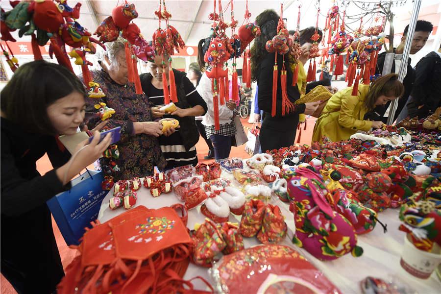 The 7th Chinese Folk Artists' Festival kicked off in Qinghefang historical block Hangzhou on Friday, with more than 100 artists nationwide gathering together to showcase their handicrafts. The festival will include exhibitions, forums and a folk art auction. Besides, top 10 folk artists and others will be awarded during the festival.