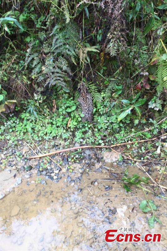 Photo taken by an infrared camera shows a leopard cat in Houhe Nature Reserve in Wufeng Tujia Autonomous County, Central China’s Hubei Province. Researchers have now found three leopard cats, which are under second class animal protection in China, living in the reserve. (Photo: China News Service/Zhu Xiaoqin)
