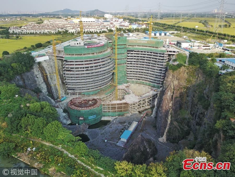 Five-star hotel being built inside quarry in Shanghai(1/3)