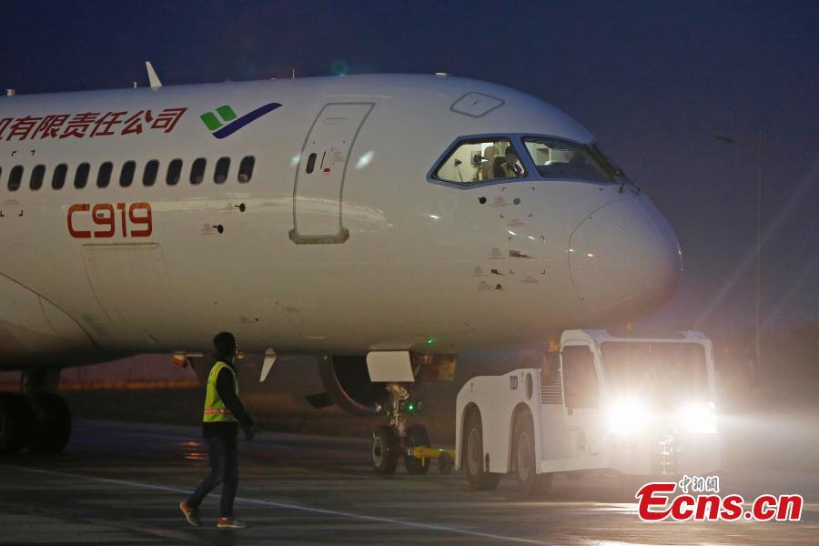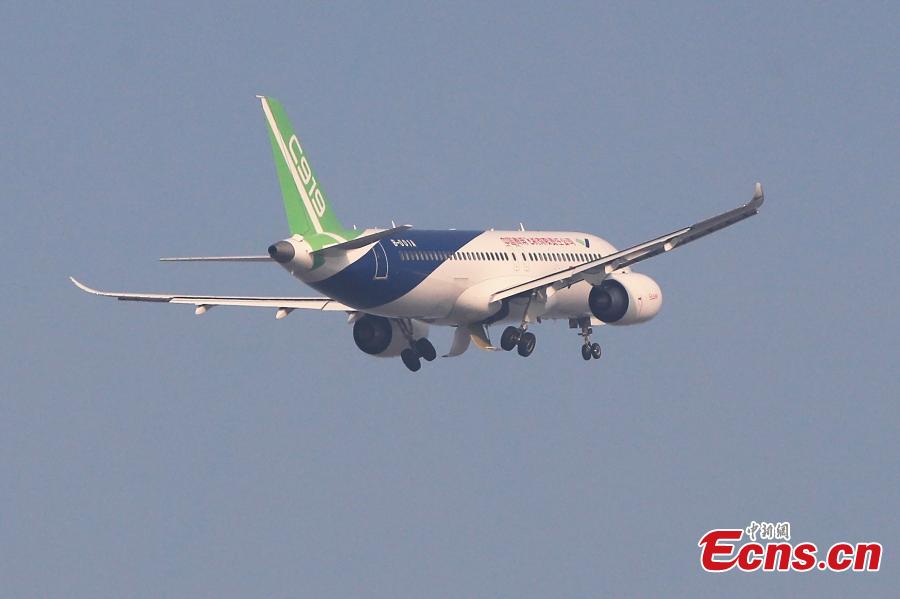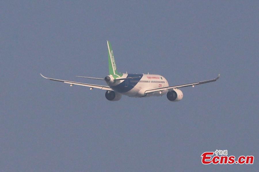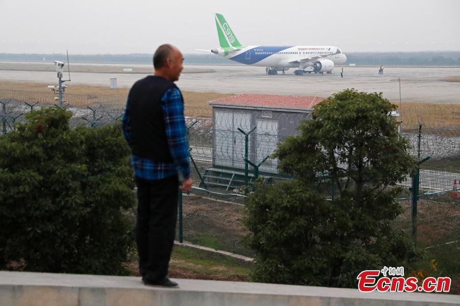 The Commercial Aircraft Corporation of China (COMAC) tests its C919 aircraft for the fifth and final time from the Shanghai Pudong International Airport on November 8, 2017. This is the final test flight before the prototype will be transferred to the city of Xi'an, Shaanxi province. (Photo: China News Service/Yin Liqin)