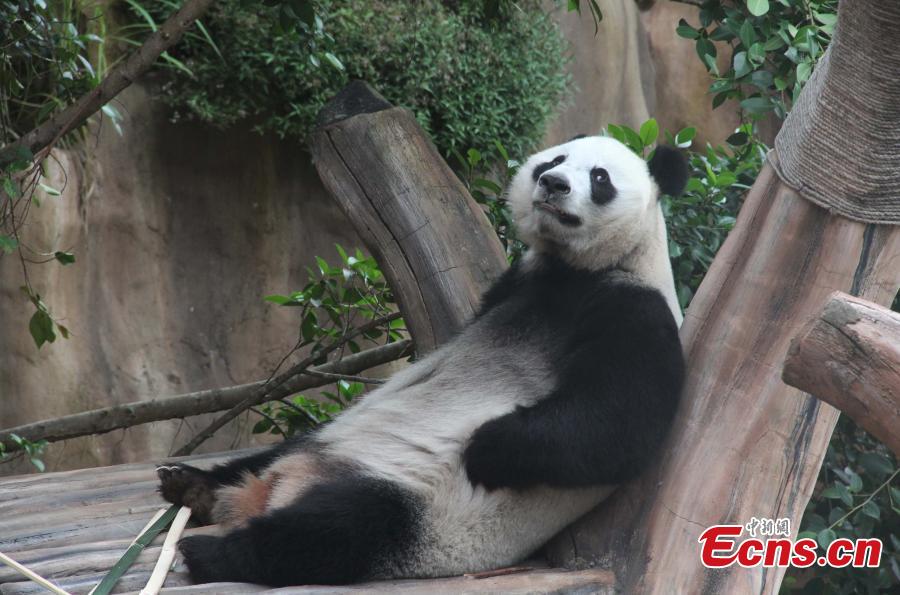 Giant panda Hu Chun is seen at Indonesia's safari park, Taman Safari Indonesia (TSI) in Indonesian city of Bogor on November 8, 2017. Pandas Hu Chun and Cai Tao, were shown in their specially built enclosure to reporters as part of preparations for allowing the public to visit them later this month. (Photo: China News Service/ Lin Yongchuan)