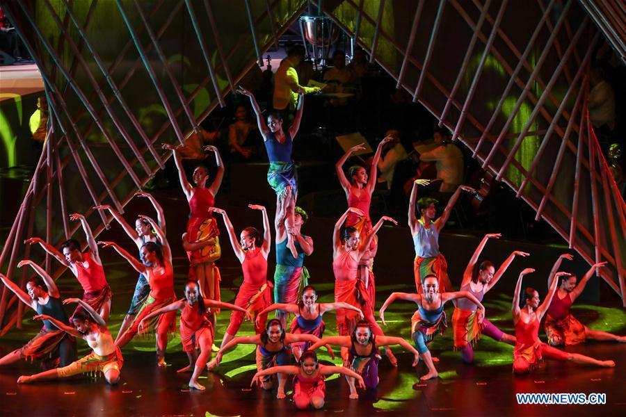 Dancers perform during the opening ceremony of the 31st Summit of the Association of Southeast Asian Nations (ASEAN) and related meetings in Manila, Philippines, Nov. 13, 2017. The 31st ASEAN Summit and related meetings opened here Monday, with leaders of 10 ASEAN member countries and dialogue partners convening to discuss security, cooperation and regional integration. (Xinhua/Pool)