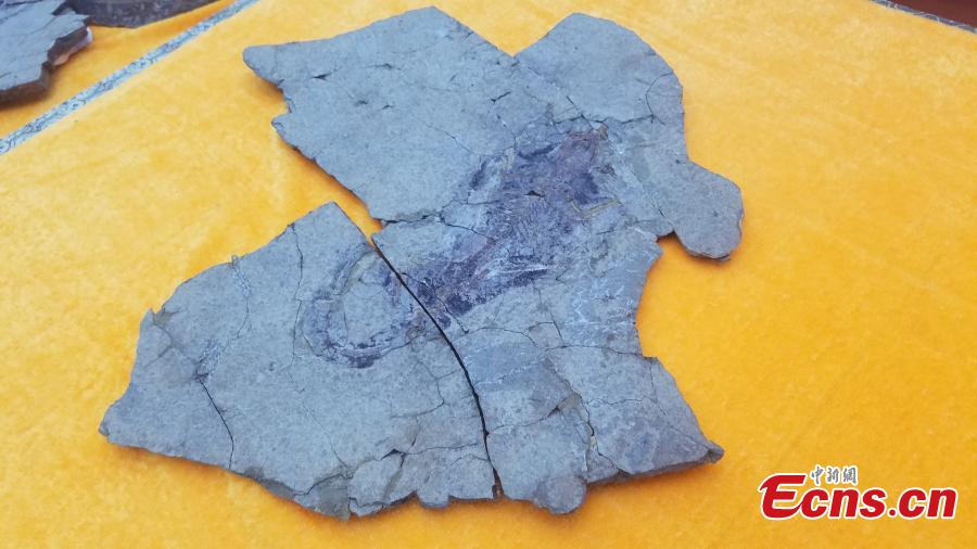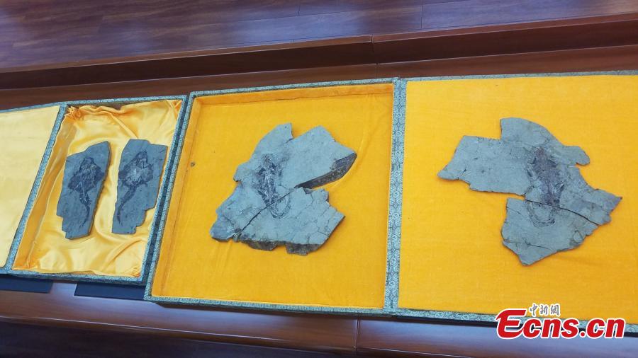 Gliding Euharamiyidan mammal fossils are shown at Bohai University in Jinzhou, Northeast China’s Liaoning province on November 14, 2017. The discovery of the two gliding Euharamiyidan mammal fossils, dating back to the Jurassic Period at 164 million and 159 million years ago respectively, was published in Nature on Nov. 14. The fossils were discovered at the beginning of 2014, and October 2015 successively in Nanshimen village of Qinglong county in north China's Hebei province by scientists from Chinese and American institutions. The scientists have been restoring and analyzing the fossils over the past few years, and concluded that the discovery has proved the diversity of the ancient mammal species, which is of great value to the study of the evolution of the mammalian middle ear. (Photo: China News Service/ Yu Ruizhai)