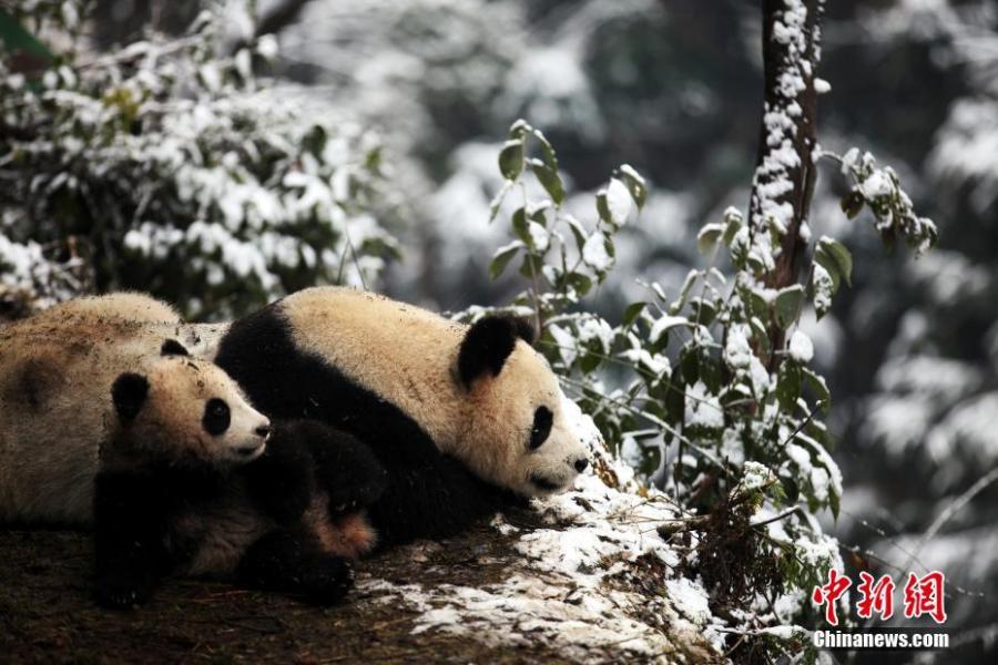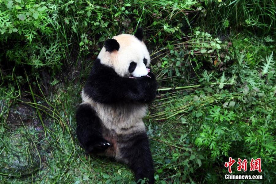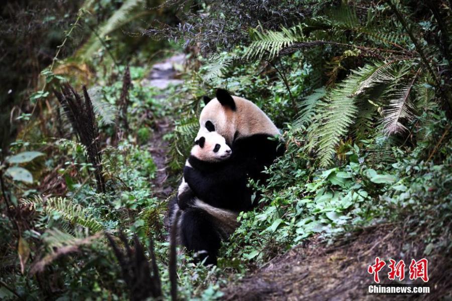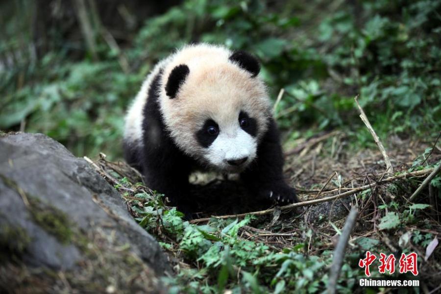 Giant panda Ba Xi plays on a tree. China Conservation and Research Center for the Giant Panda in southwest China's Sichuan Province plans to release captive-bred pair, the male panda Ba Xi and the female panda Ying Xue into the wild later this month under a program to help rebuild the wild panda population. The panda pair have received two years of training in Wolong to survive in the wild. (Photo: China News Service/Zhong Xin)