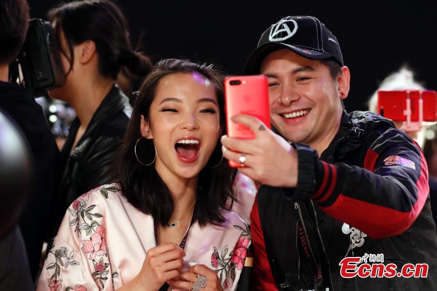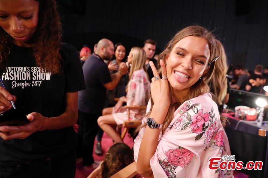 Model Liu Wen poses backstage before the Victoria's Secret Fashion Show in Shanghai, Nov. 20, 2017. (Photo: China News Service/Zhang Hengwei)