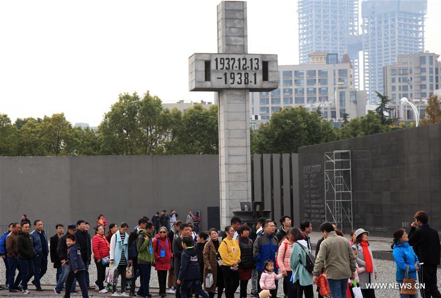 People visit the Memorial Hall of the Victims in Nanjing Massacre by Japanese Invaders in Nanjing, capital of east China's Jiangsu Province, Nov. 19, 2017. The Memorial Hall of the Victims in Nanjing Massacre by Japanese Invaders was closed on Monday for renovation till Dec. 13, and will reopen on Dec. 14. (Xinhua/Liu Jianhua)