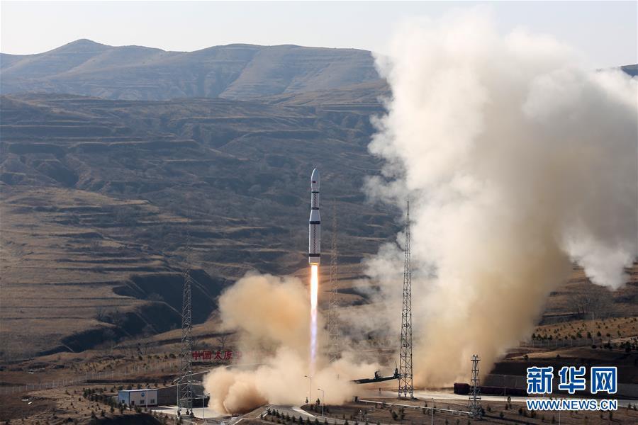 A remote sensing satellite of the Jilin-1 satellite series successfully launches Tuesday in North China's Shanxi Province. (Photo/Xinhua)
