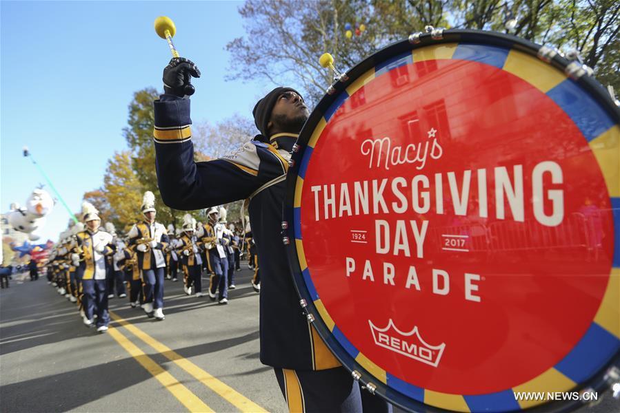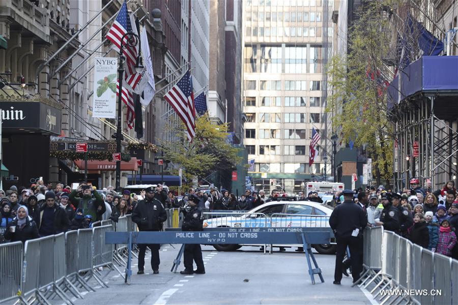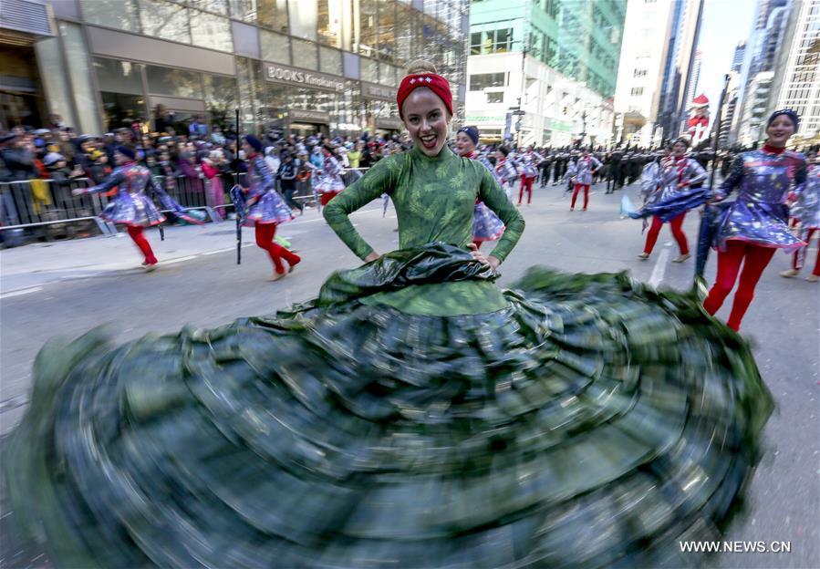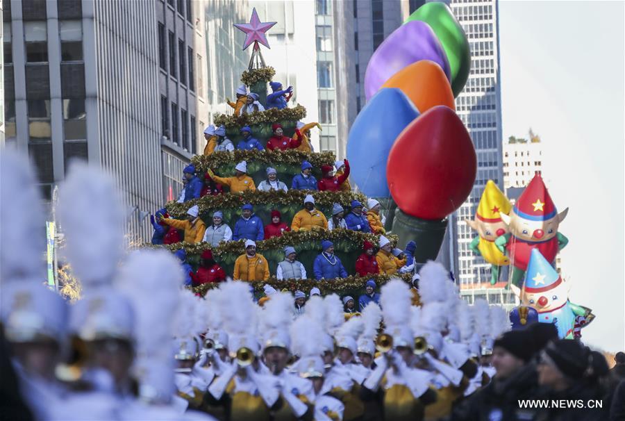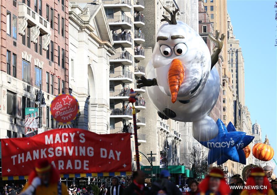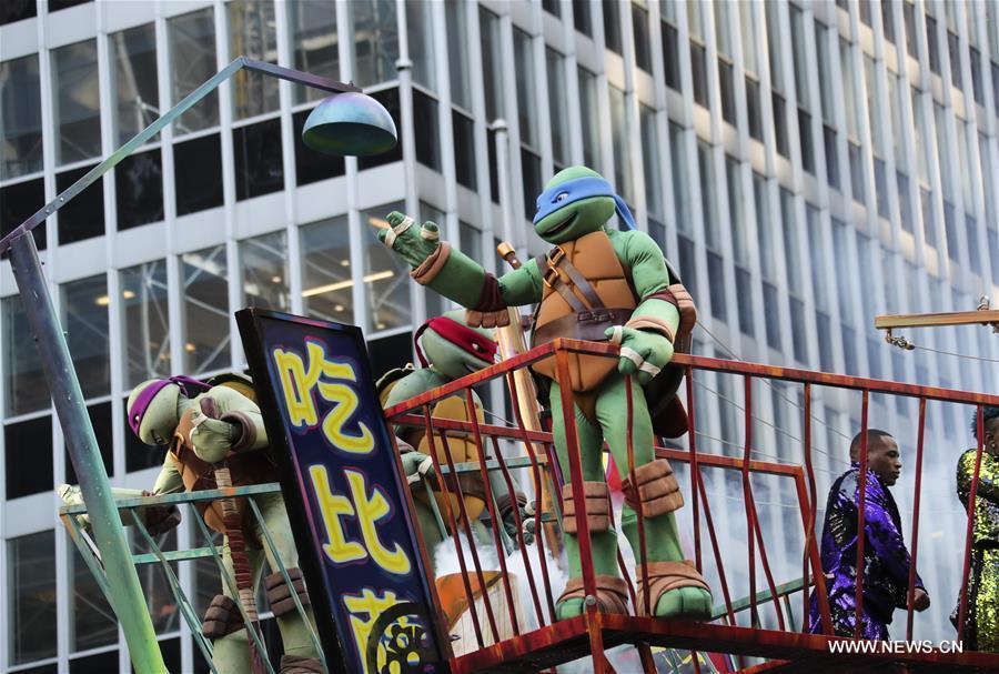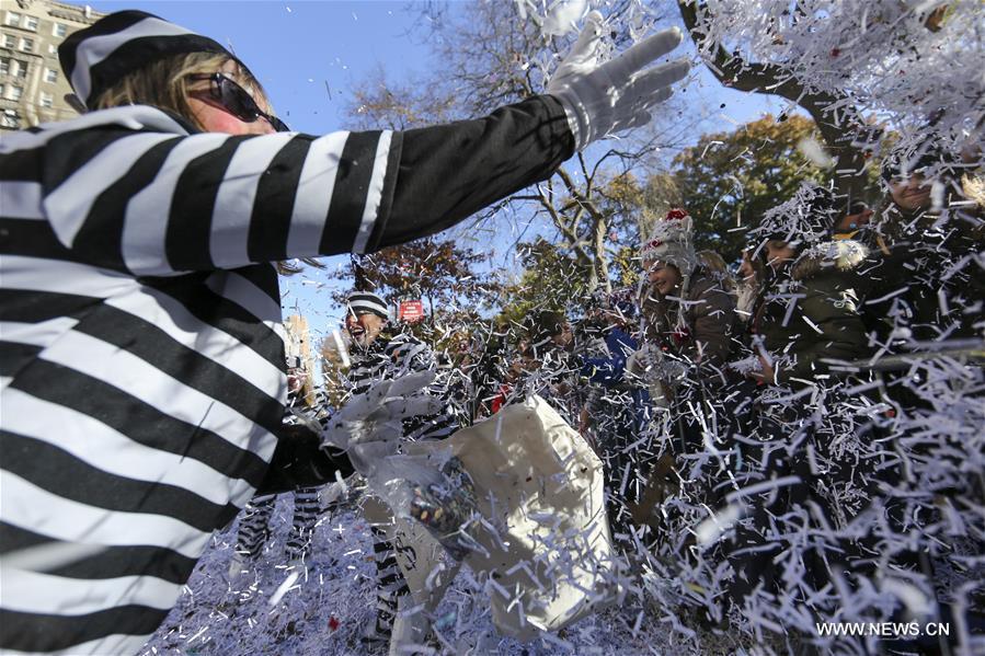 The balloon of Paw Patrol's Chase is seen during the 2017 Macy's Thanksgiving Day Parade in New York, the United States, on Nov. 23, 2017. (Xinhua/Wang Ying)