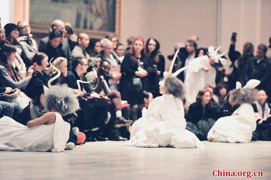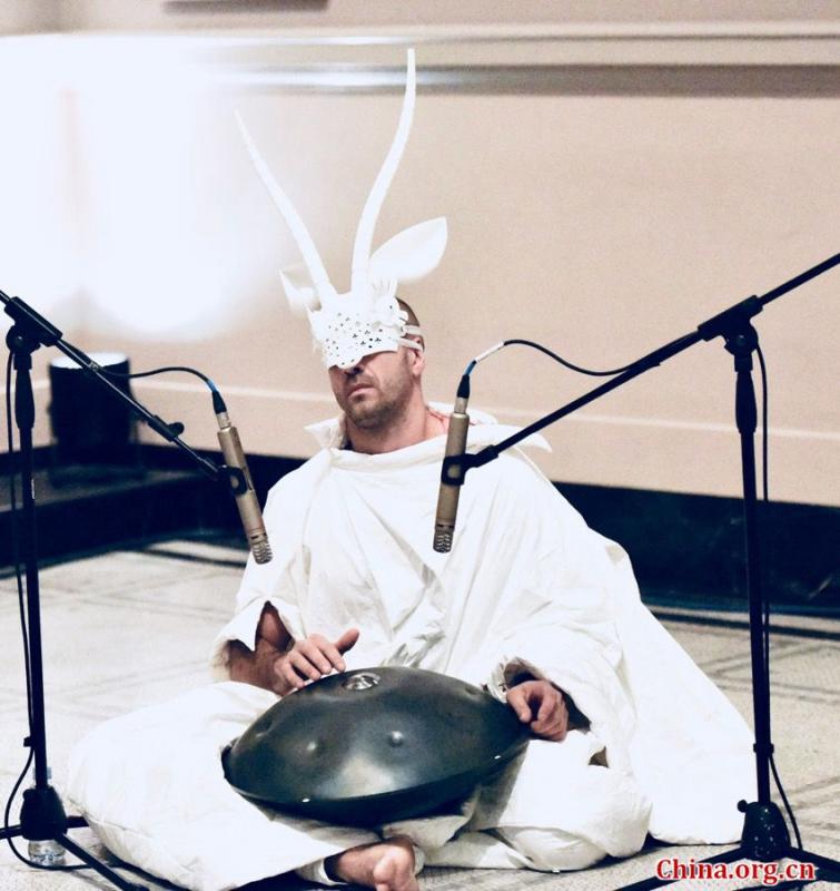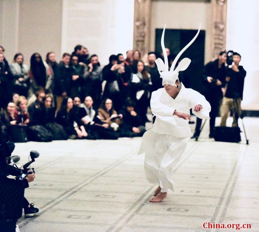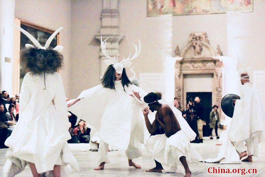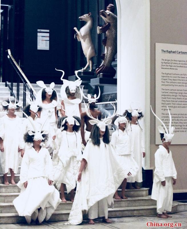 Chinese artist and designer Xu Rui brings a music and dance performance called "Sky In Their Eyes: The Antelope in a Vanishing Landscape" for the Friday Late event at the Victoria & Albert Museum on Nov. 24, 2017. (Photo/China.org.cn)