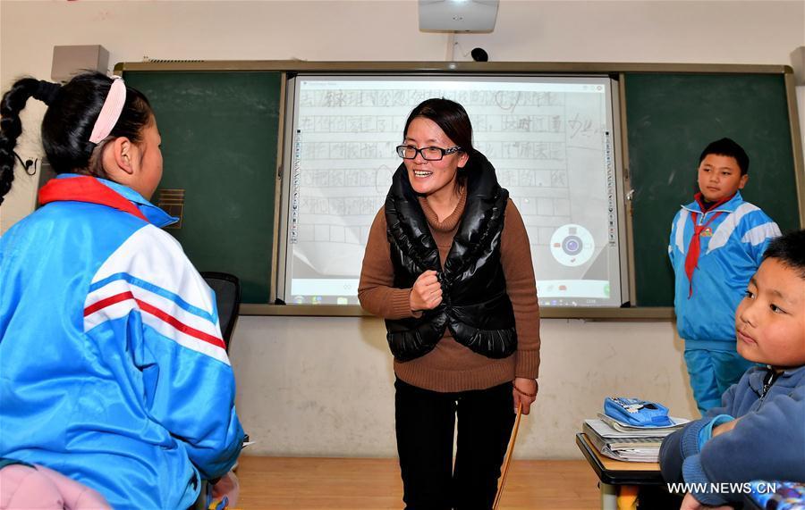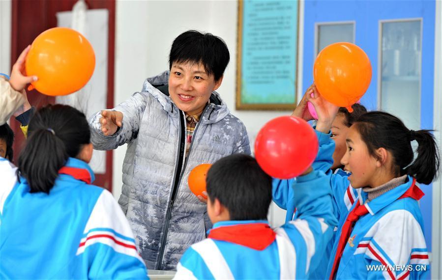 Teacher Zu Fengguo gives psychological class to pupils at a primary school in Lhasa, capital of southwest China's Tibet Autonomous Region, Nov. 29, 2017. Education quality of the region has seen great improvement since a program, in which excellent teachers from other places support the region through education, was launched in 2016. (Xinhua/Zhang Rufeng)