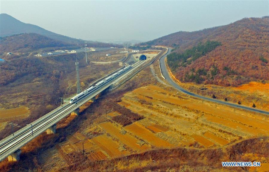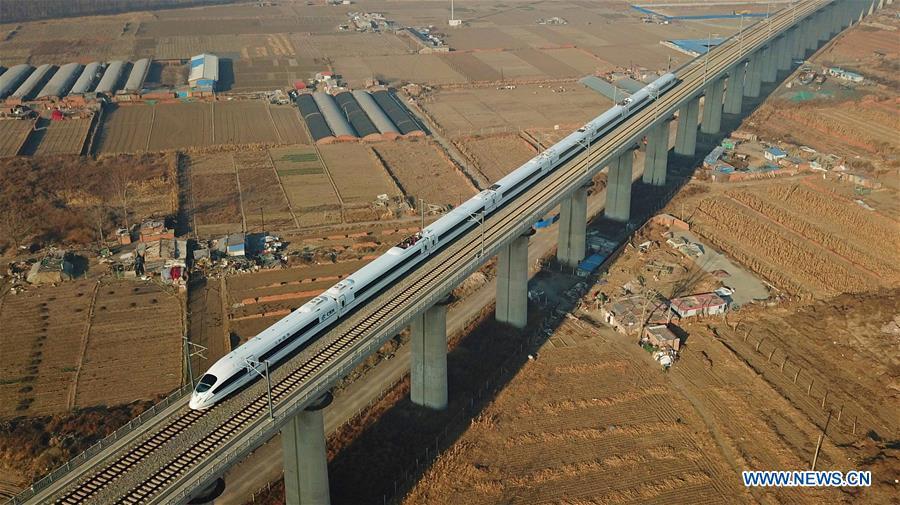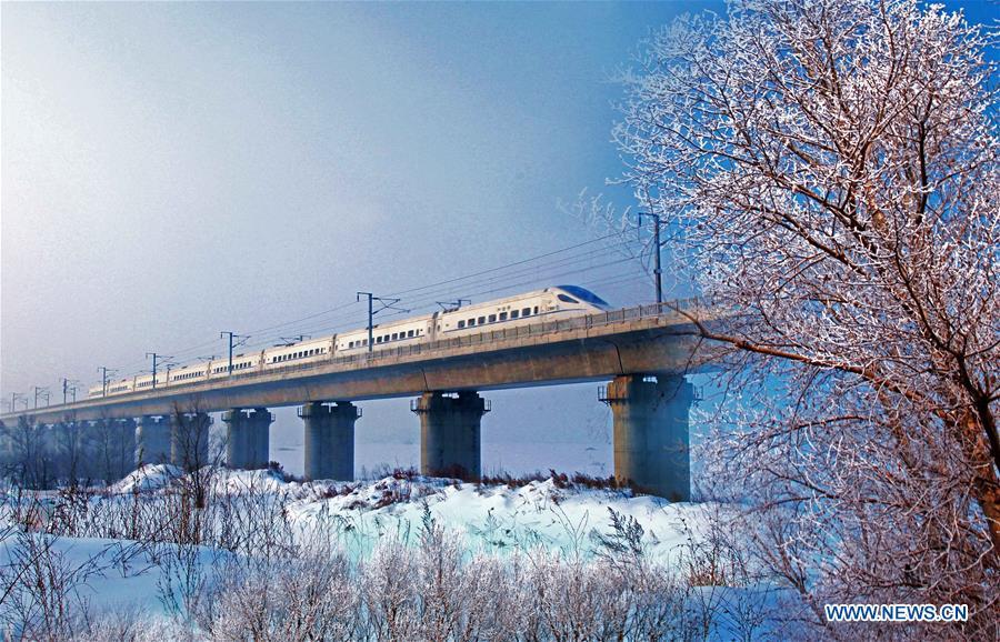 A bullet train runs on a bridge of Harbin-Dalian high-speed railway in Yingkou, northeast China's Liaoning Province, Jan. 14, 2013. More than 300 million trips had been taken by train running on Harbin-Dalian high-speed railway as of Friday, the 5th anniversary of its operation. (Xinhua/Yang Qing)