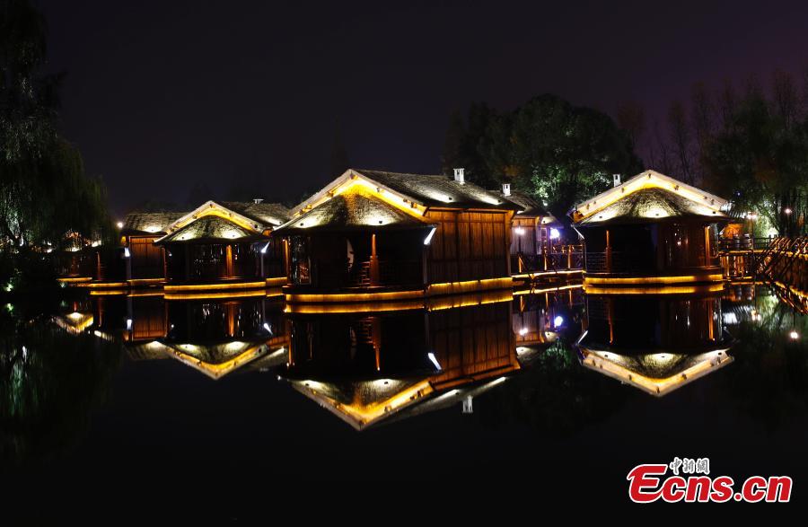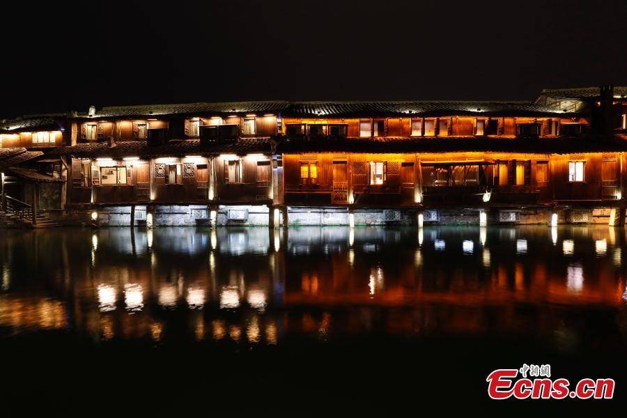 Photo taken on Dec 2, 2017 shows the night view in Wuzhen, East China's Zhejiang province. The 4th World Internet Conference is held there from Dec 3 to 5. (Photo: China News Service/Du Yang)