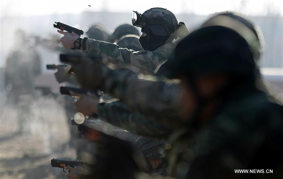 Chinese and Russian soldiers take part in a joint anti-terror drill in Yinchuan, capital of northwest China's Ningxia Hui Autonomous Region, Dec. 3, 2017. (Xinhua/Wang Tao)