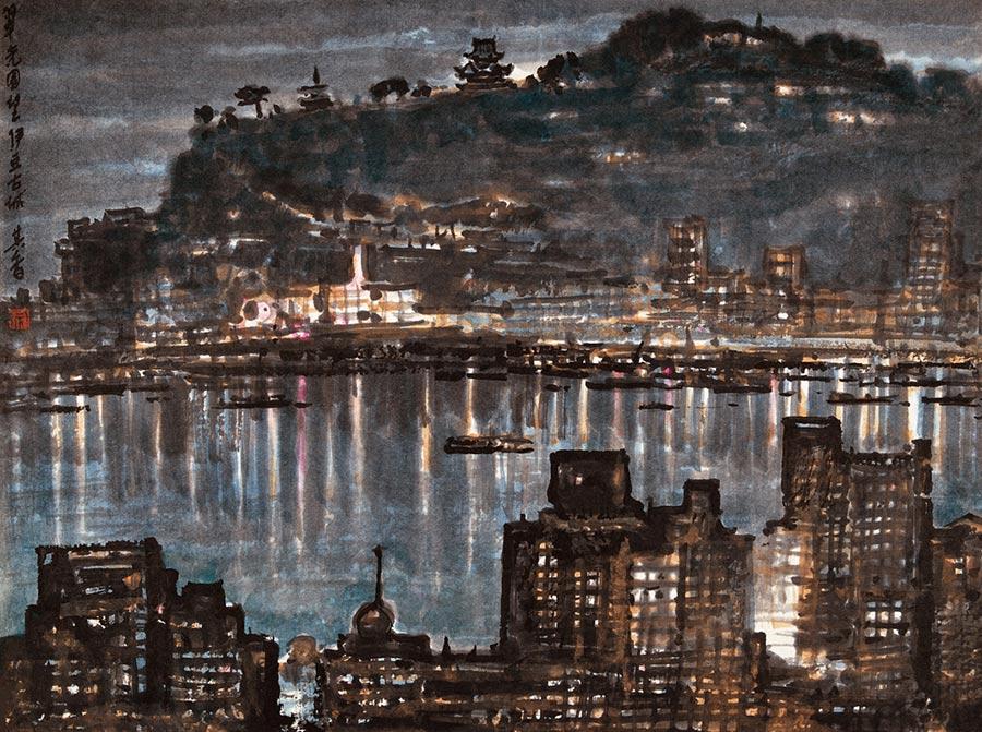 He applied varying shades of ink and also, he adopted the liubai (leaving blanks) technique to indicate the graduation of brightness in dark night. He was thus able to show the twinkling lights of Chongqing, the houses layering on the mountain slopes, the ragged hilly paths and chaotic streets.
