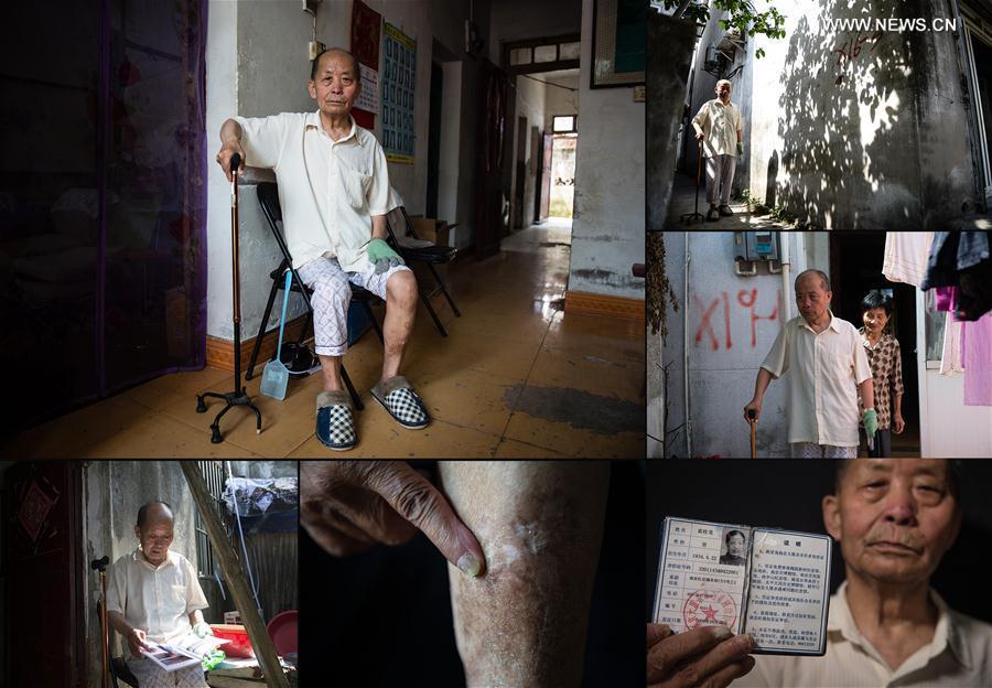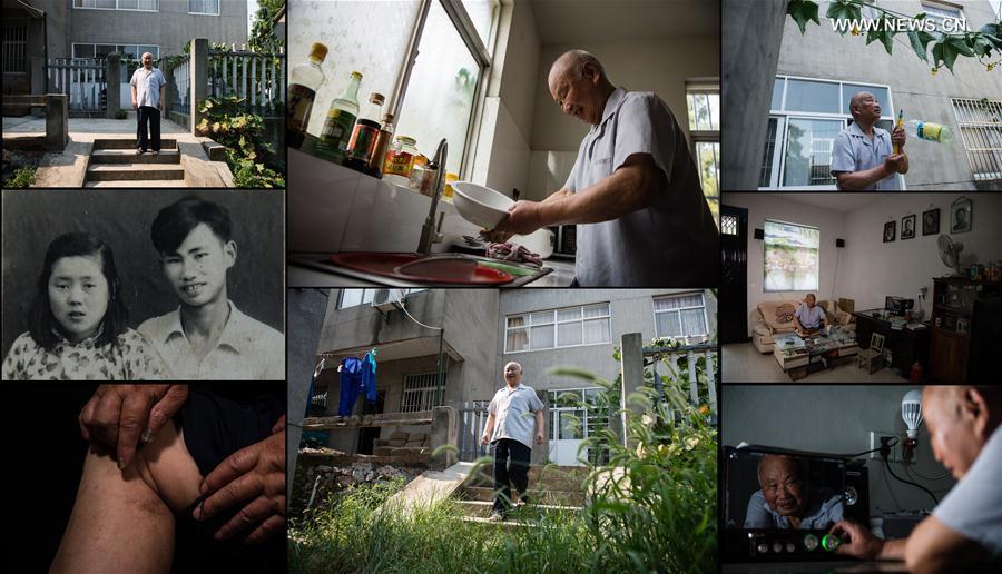 Combo photo taken on Aug. 9, 2017 shows daily life of Shen Guiying, a survivor of Nanjing Massacre, a heinous crime committed by the Japanese militarists during World War II in 1937, in Nanjing, capital of China. Photo shows Shen crying as recalling the cruelty of the Japanese invaders (L, top), and other photos show bedridden Shen at home. Shen was born on Dec. 21, 1928. Her father Shen Chuanhe, uncle Shen Chuanyuan and her aunt were all killed by the Japanese invaders in 1937. Another uncle Shen Chuanhai was taken away by the Japanese soldiers and never came back. Shen currently has three daughters and a son, and she is completely bedridden now. The year 2017 marks the 80th anniversary of the Nanjing Massacre, in which more than 300,000 Chinese were killed by the Japanese invaders who occupied Nanjing on Dec. 13, 1937, marking the start of six weeks of destruction, pillage, rape and slaughter in the city. There are only less than 100 living survivors of the atrocity. Reporters from Xinhua spent many years to look for the survivors of Nanjing Massacre and record their current lives. (Xinhua/Han Yuqing, Li Xiang and Ji Chunpeng)