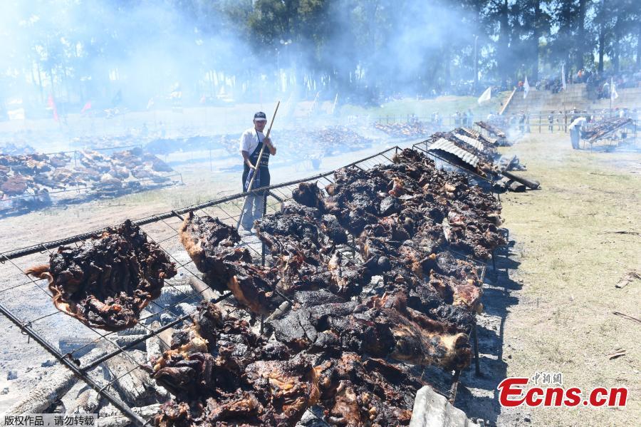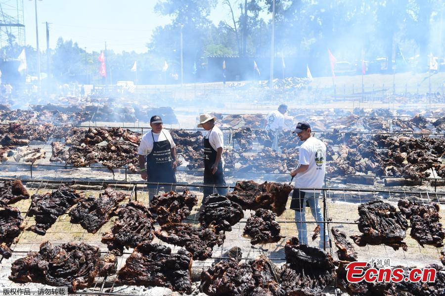 A total of 16,500 kg of beef are grilled in Rodo Park in Minas, Uruguay, 120 km from Montevideo, in an attempt to break the Guinness record for "The World' s Biggest Barbecue", on December 10, 2017. (Photo/Agencies)