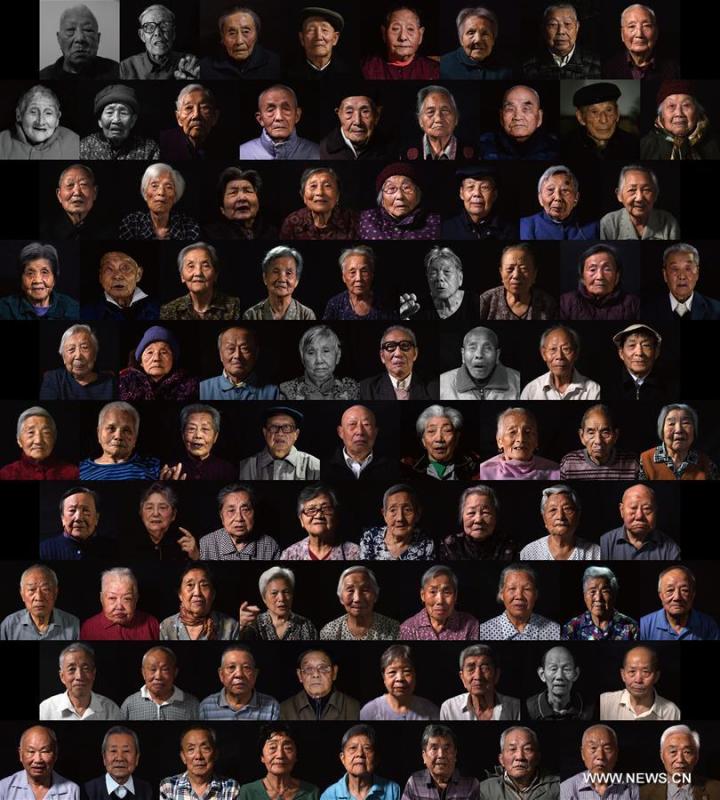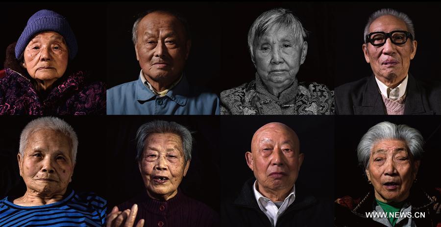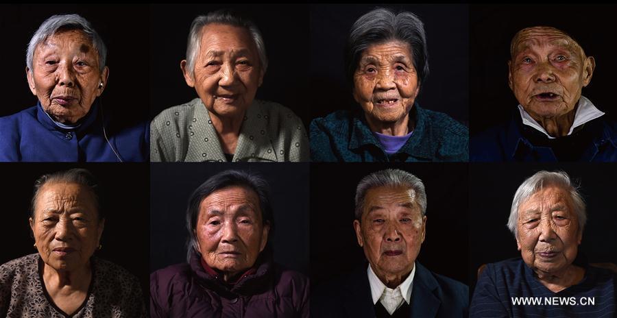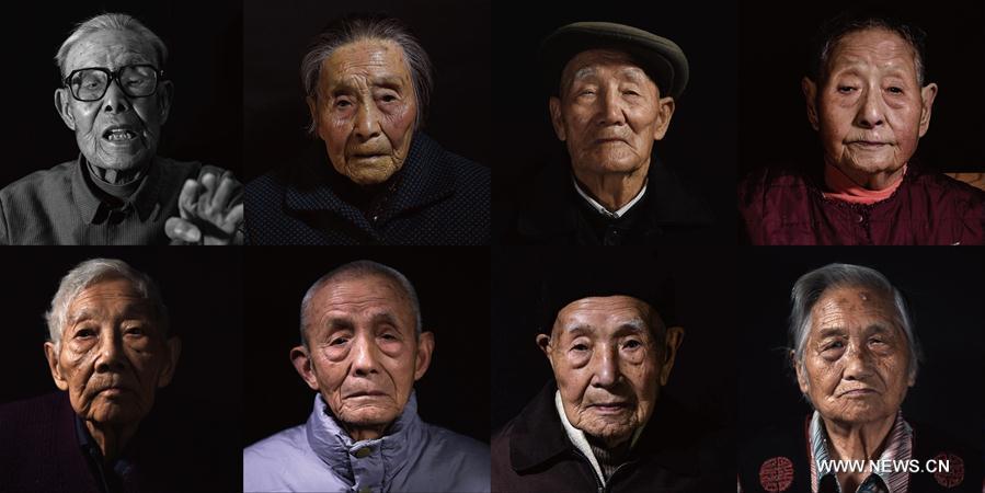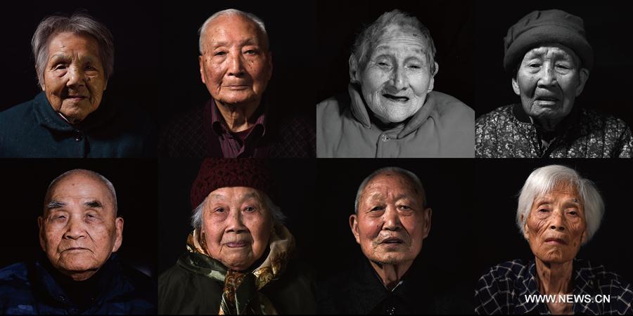 Combo photo shows portraits of survivors of the Nanjing Massacre: (from L to R, top) Guan Guangjing (deceased); Zhu Sizi (97 yrs); Liu Tingyu (95 yrs); Chen Yulan (95 yrs); (from L to R, bottom) Li Suyun (94 yrs); Wang Yilong (94 yrs); Wang Changfa (94 yrs); Xue Yujuan (93 yrs). The year 2017 marks the 80th anniversary of the Nanjing Massacre, in which more than 300,000 Chinese were killed by the Japanese invaders who occupied Nanjing on Dec. 13, 1937, marking the start of six weeks of destruction, pillage, rape and slaughter in the city. There are only less than 100 living survivors of the atrocity. Reporters from Xinhua spent many years to look for the survivors of Nanjing Massacre and recorded their current lives. (Xinhua/Han Yuqing, Li Xiang and Ji Chunpeng)