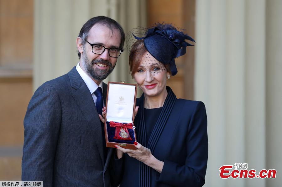 JK Rowling poses for pictures after she was made a Companion of Honour by Britain's Prince William during an Investiture ceremony at Buckingham Palace, in London December 12, 2017. (Photo/Agencies)