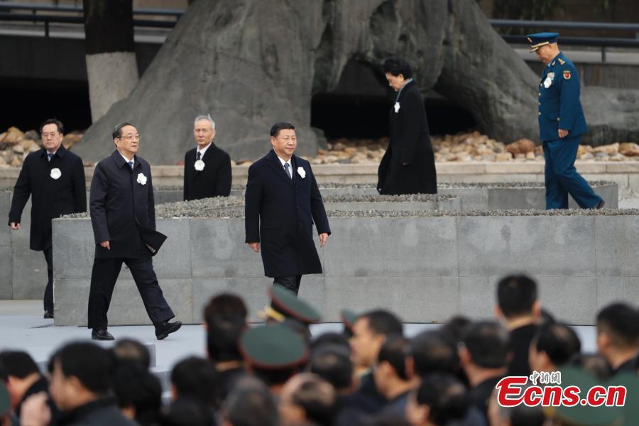 President Xi Jinping attends the state memorial ceremony in Nanjing, Jiangsu province, on Wednesday to mark the 80th anniversary of the Nanjing Massacre. Xi and other senior officials joined people from different walks of life at the memorial hall for the victims in paying tribute to the more than 300,000 who died. (Photo: China News Service/Du Yang)