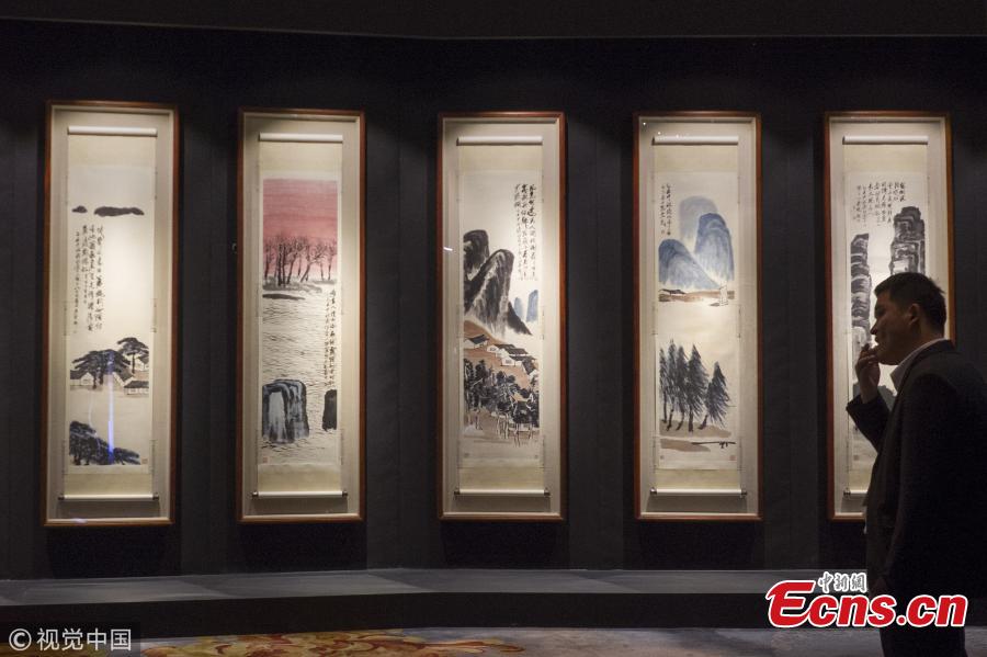 Twelve Landscape Screens produced by Qi Baishi. A collection of 12 beautiful landscapes produced by Qi Baishi (1864-1957), the ink-brush master artist of modern China, grossed 931.5 million yuan ($144 million) at a Beijing auction on December 17, 2017. The price set a new record for any piece of Chinese artwork sold at auction worldwide. The fierce bidding race began at 450 million yuan, and a telephone bidder eventually won this momentum body of Qi's work. The price also promotes Qi to be the first Chinese artist whose work has been sold for more than $100 million at auction.In 2010, an 18th-century famille rose rotation porcelain vase made during the reign of Qing Emperor Qianlong fetched 43 million pounds at an auction in London. Titled Twelve Landscape Screens, each of the paintings is framed in a vertical shaft of 1.8 meters long. Painted in 1925, they each show a lively natural scene with an elegant palette. (Photo/Weibo account of CCTV)