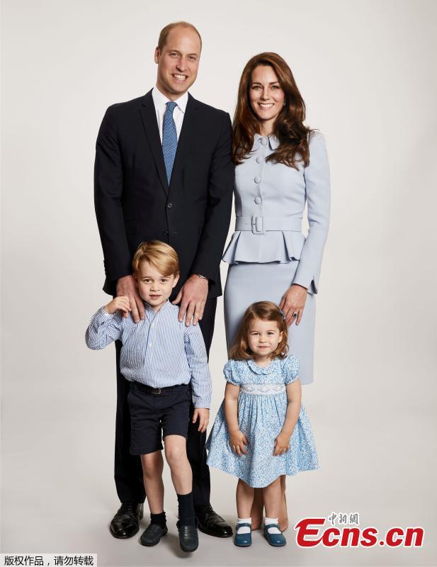 Britain's Prince William, Catherine, the Duchess of Cambridge and their two children Prince George and Princess Charlotte pose for a photograph at Kensington Palace for their 2017 Christmas card, London, Britain, December 18, 2017. (Photo/Agencies)