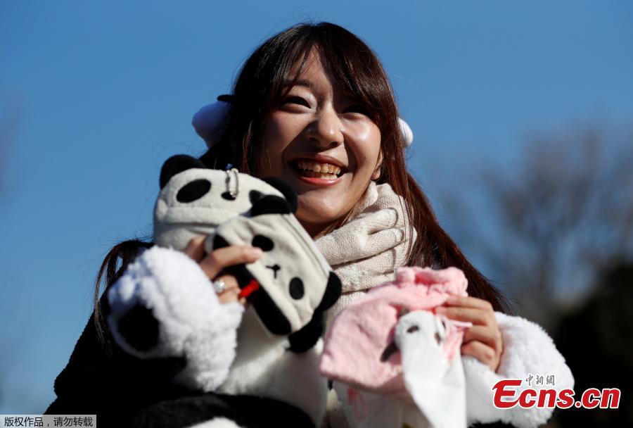 Female giant panda cub Xiang Xiang (L) walks beside her mother Shin Shin (R) at Ueno Zoo in Tokyo on December 19, 2017. Xiang Xiang appeared to the public the first time at the zoo. (Photo/Agencies)