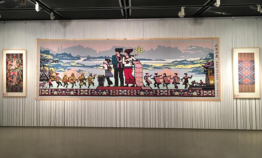 A highlight is a piece given to Mao Zedong by a female Tujia artisan in 1950. A 4.5-meter-long, 1.5-meter-wide work on display took nearly 100 craftspeople five months to finish.
