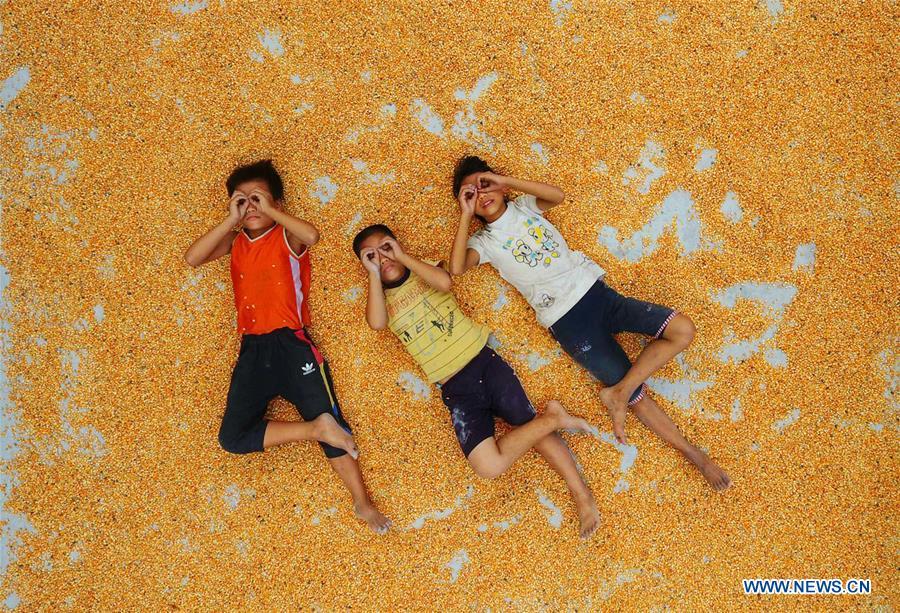 Ten-year-old Meng Yuqiang (L) and his 11-year-old cousin Meng Yutao sits on top of a mountain in Nonghe Village of Qibainong Township in Dahua Yao Autonomous County, south China's Guangxi Zhuang Autonomous Region, July 25, 2017. They both hope to learn knowledge so as to step out of the mountain in the future. Due to harsh environmental conditions such as the stony desertification and mountainous landform, Guangxi has long been a less developed area in China. In recent years, local government carried out many measurements for the poverty alleviation work. Tens of thousands of officials and staff members helped local people build roads, repair houses, improve education and industry development. In 2016, more than 1.11 million people were liberated from poverty. The poverty-stricken population in the region has declined from 10.12 million in 2010 to current 3.638 million. (Xinhua/Wang Jingqiang)