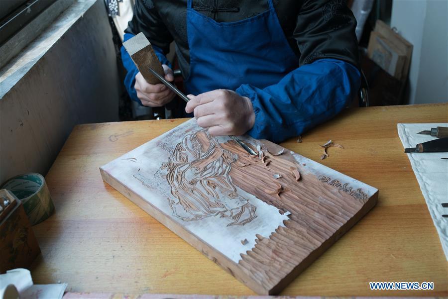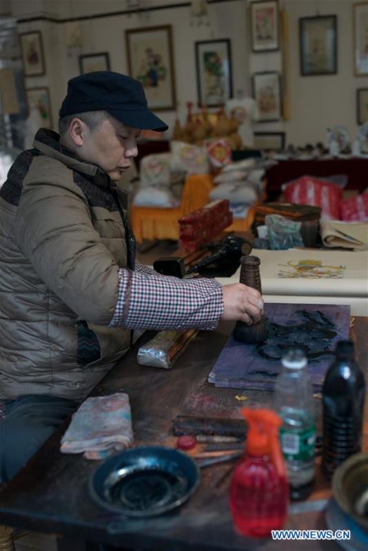 A painter paints in Jiajiang County of Leshan City, southwest China's Sichuan Province, Dec. 24, 2017. New Year Painting is a unique art form in Chinese folk culture, which is used to decorate doors, walls and windows on the Chinese New Year to invite heavenly blessings.(Xinhua/Wang Di)