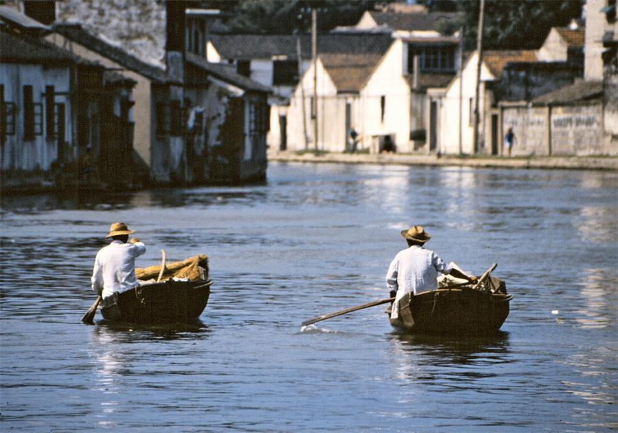 Visiting Shanghai in 1996, I looked down from the Oriental Pearl Television Tower to where Suzhou Creek entered the Huangpu River. So many barges were navigating or berthed along this narrow channel. Intrigued I poured over maps of the lower Yangtze River basin that revealed a dense network of waterways interlacing and connecting with Lake Tai, the Yangtze and the Grand Canal running north from Hangzhou past Suzhou. Indeed the presence of so much water and saturated ground was historically problematic, if not impossible, for conventional road construction. For several millennium waterways were the principal option for travel in much of eastern China. Towns well-connected by water boomed. There were also bountiful harvests of rice and fish.