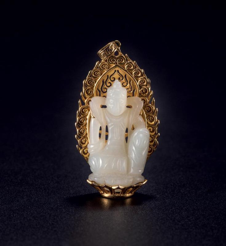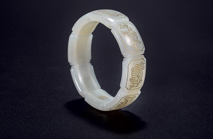 Beijing-born artist Yang Genlian, 57, is famous for his jade carving skills. He has in recent years focused on creating objects that feature the craft of "jin xiang yu" -- jade inlaid with thin gold. The work also characterizes the gold medals used at the Beijing Olympic Games in 2008.