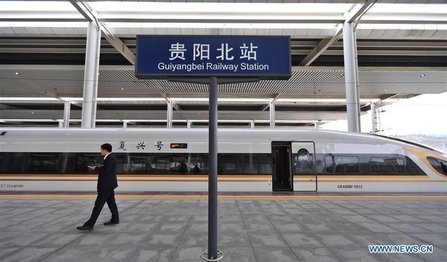 A steward is seen on a Fuxing bullet train G1372 at Guiyangbei Railway Station in Guiyang, capital of southwest China's Guizhou Province, Dec. 28, 2017. A new train diagram was put into operation in China from today on. G1372 from Kunming, capital of southwest China's Yunnan Province, to Shanghai is the first Fuxing bullet train ever operated in southwest China. (Xinhua/Liu Xu)
