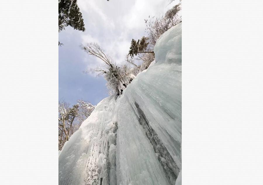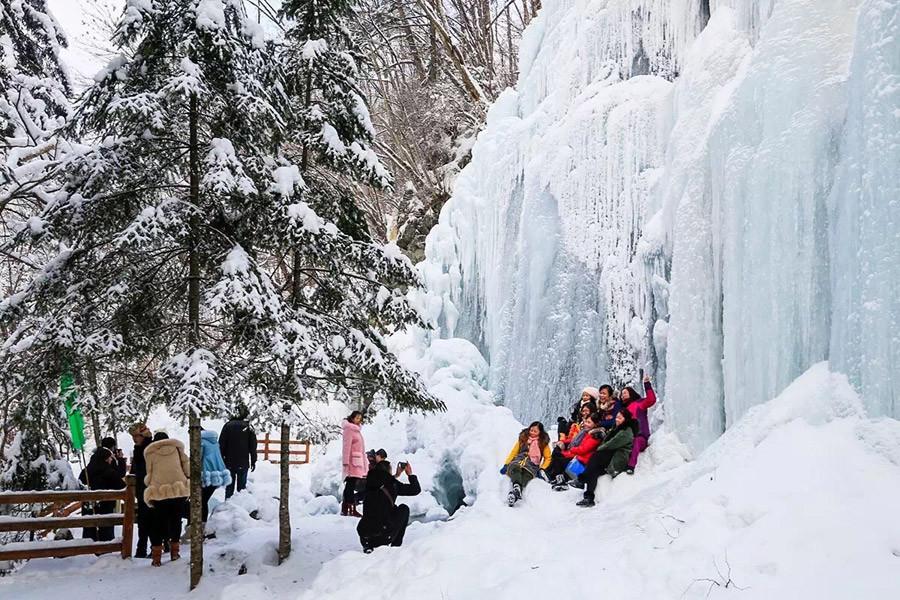 In Northeast China's Jilin Province, the 2051-meter-high Wangtiane Mountain provides a unique landscape of white snow, soft frosted trees and icefalls for winter tourists and photographers. Tourists can enjoy the marvelous natural scenery in a white fairyland for the whole winter. (Photo chinadaily.com.cn)