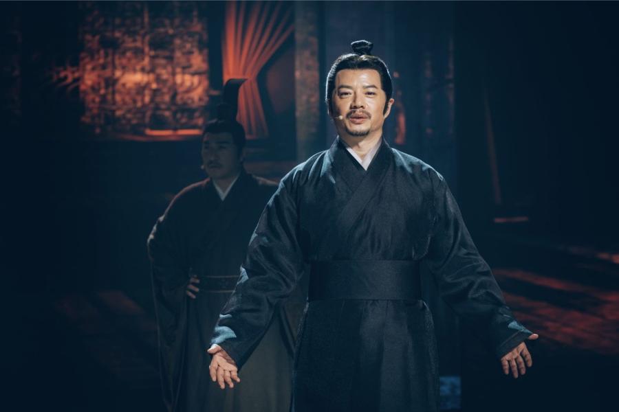 Actor Duan Yihong delivers a monologue as the Spirit of the Sword of Goujian in the show National Treasure. (Photo provided to China Daily)