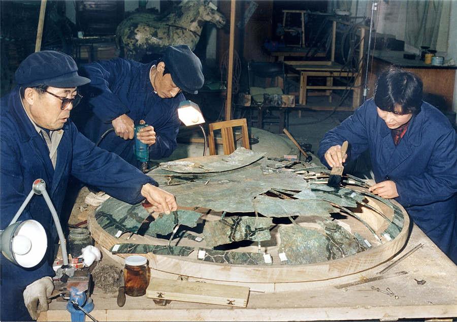 The national treasure, made up of two bronze chariots with four horses each, belonged to China's first emperor Qinshihuang 2,200 years ago. (Photo provided to chinadaily.com.cn)