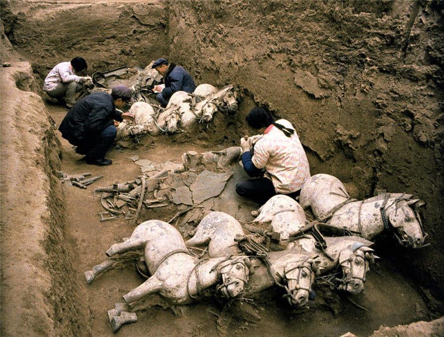 Two sets of bronze chariots and horses were unearthed during the 1980 evacuation of the mausoleum of Qinshihuang, China's first emperor, who lived more than 2,000 years ago. Their display by the museum will now offer some clues about the structure of ancient vehicles and use of horses, shedding light on the ancient technology of metal manufacturing and the royal transportation system.