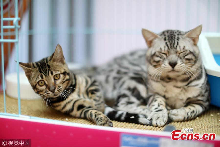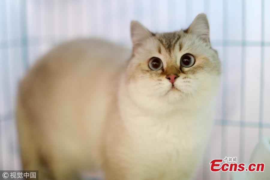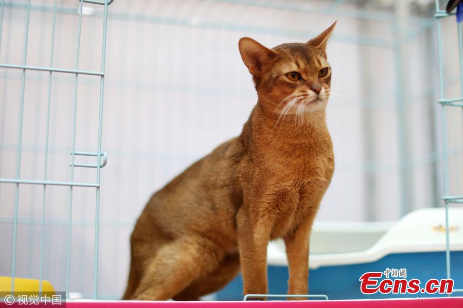 An Abyssinian cat is part of an exhibition in Jinan City, the capital of East China’s Shandong Province, Jan. 9, 2018. Approximately 30 cats were included in the cat exhibition, held at a shopping mall, with an Abyssinian cat the most expensive with a worth of 200,000 yuan ($31,000). (Photo/VCG)