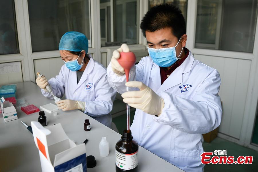 Researchers work at the Center for Disease Control and Prevention in Taiyuan City, the capital of North China’s Shanxi Province, Jan. 11, 2018. A flu epidemic has hit many parts of China, increasing the workload of researchers in the center tasked with conducting a microbiological analysis and preparing next year's vaccine. (Photo: China News Service/Wei Liang)
