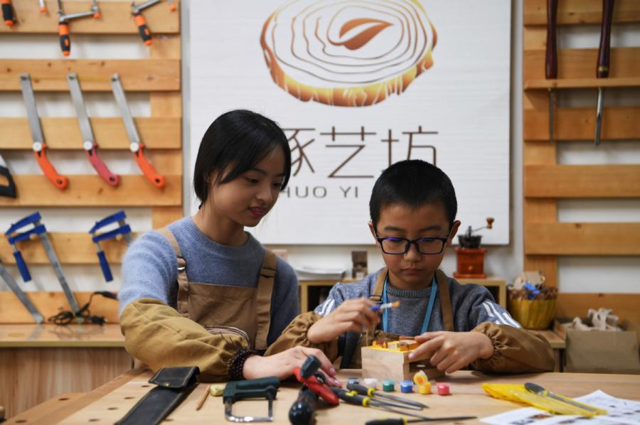 The crafts can be taken away once finished by the customers. With more and more people come here to experience the fun of wood crafts making, Song has an income of nearly 10,000 yuan ($1,548) every month.